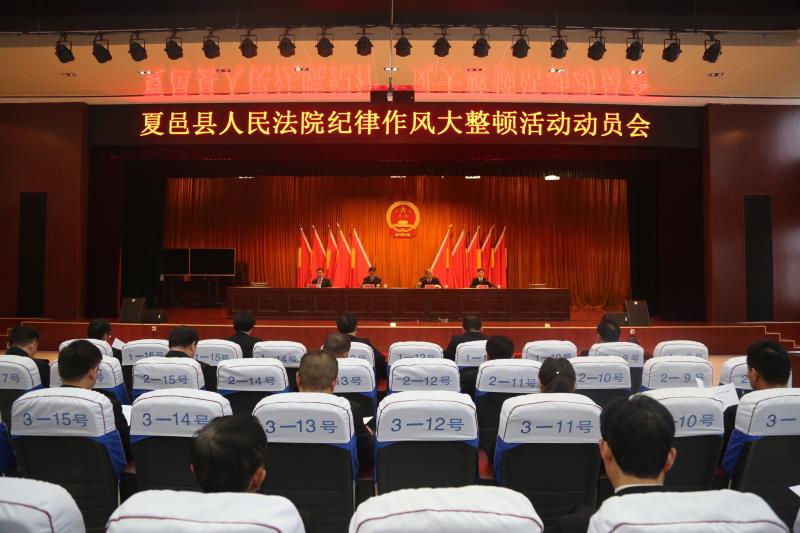 10月29日,夏邑县人民法院召开党员干部纪律作风大整顿活动动员会议,传达学习全县党员干部纪律作风大整顿活动动员会议精神,对全院党员干部纪律作风大整顿活动进行动员部署。党组书记、院长杨松挺出席会议并讲话,全体干警参加会议。