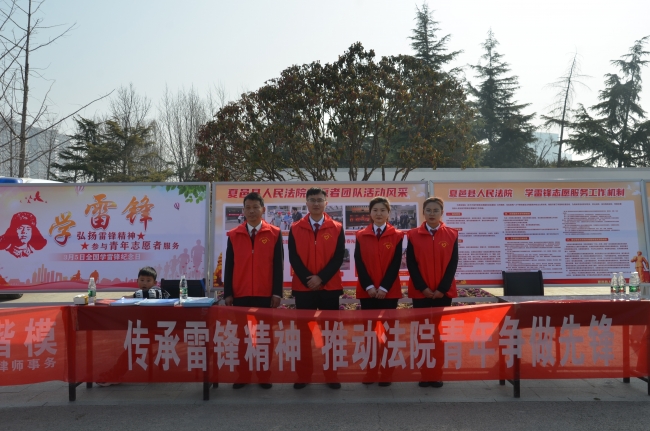 为积极响应团县委号召,切实把学习雷锋精神转化为行动实际,3月5日,夏邑县人民法院在天龙湖公园北门开展以“学习二十大,志愿新时代”为主题的学习雷锋纪念日活动。