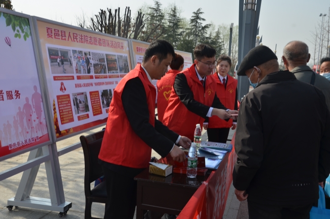 法院青年干警向前来咨询的群众发放宣传单页,以拉家常、排忧难的方式向群众普及《民法典》里的相关法律知识,以通俗易懂的语言,生动鲜活的案例,帮助群众了解诉讼风险、诉讼时效等法律知识,普及“一站式”多元解纷诉讼服务,以实际行动践行雷锋精神,获得群众的一致好评。