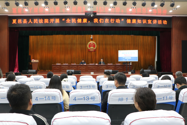 11月6日,夏邑法院开展“全民健康,我们在行动”健康教育普及讲座,院党组成员、政治部主任梁远主持,河南省安全健康教育中心宣教科主任韩伟主讲。
